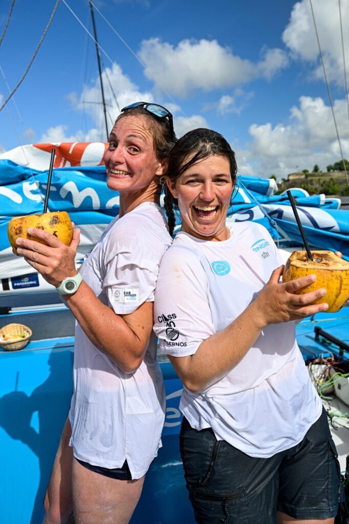 « Un immense merci à tous pour votre précieux soutien tout au long de la course, mais aussi — et surtout — depuis les premières heures du projet, jusqu’à notre arrivée ici, de l’autre côté de l’Atlantique. Nous sommes très heureuses… » – Axelle & Aina